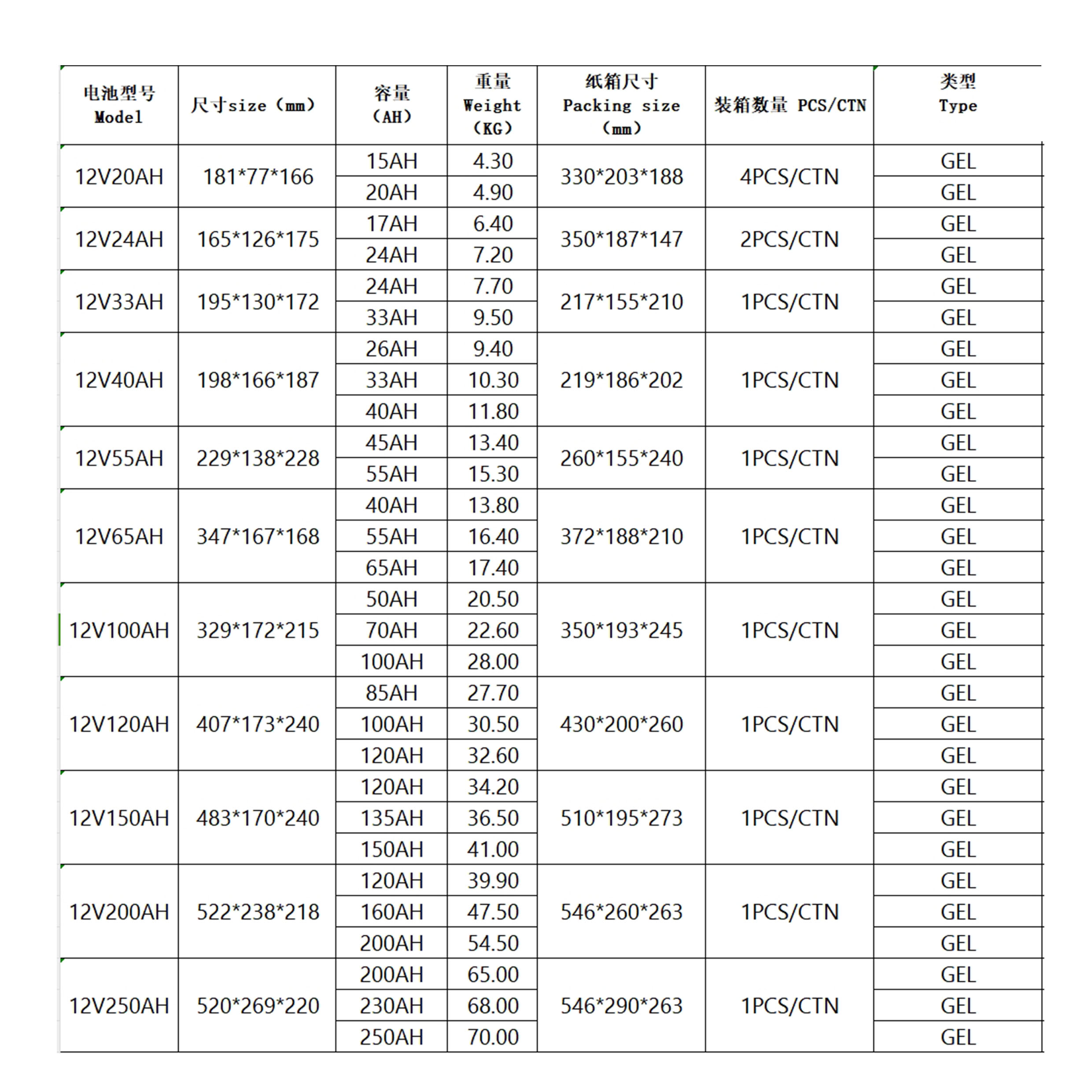 | 2 | 額定容量 | 0.8AH-3000AH |