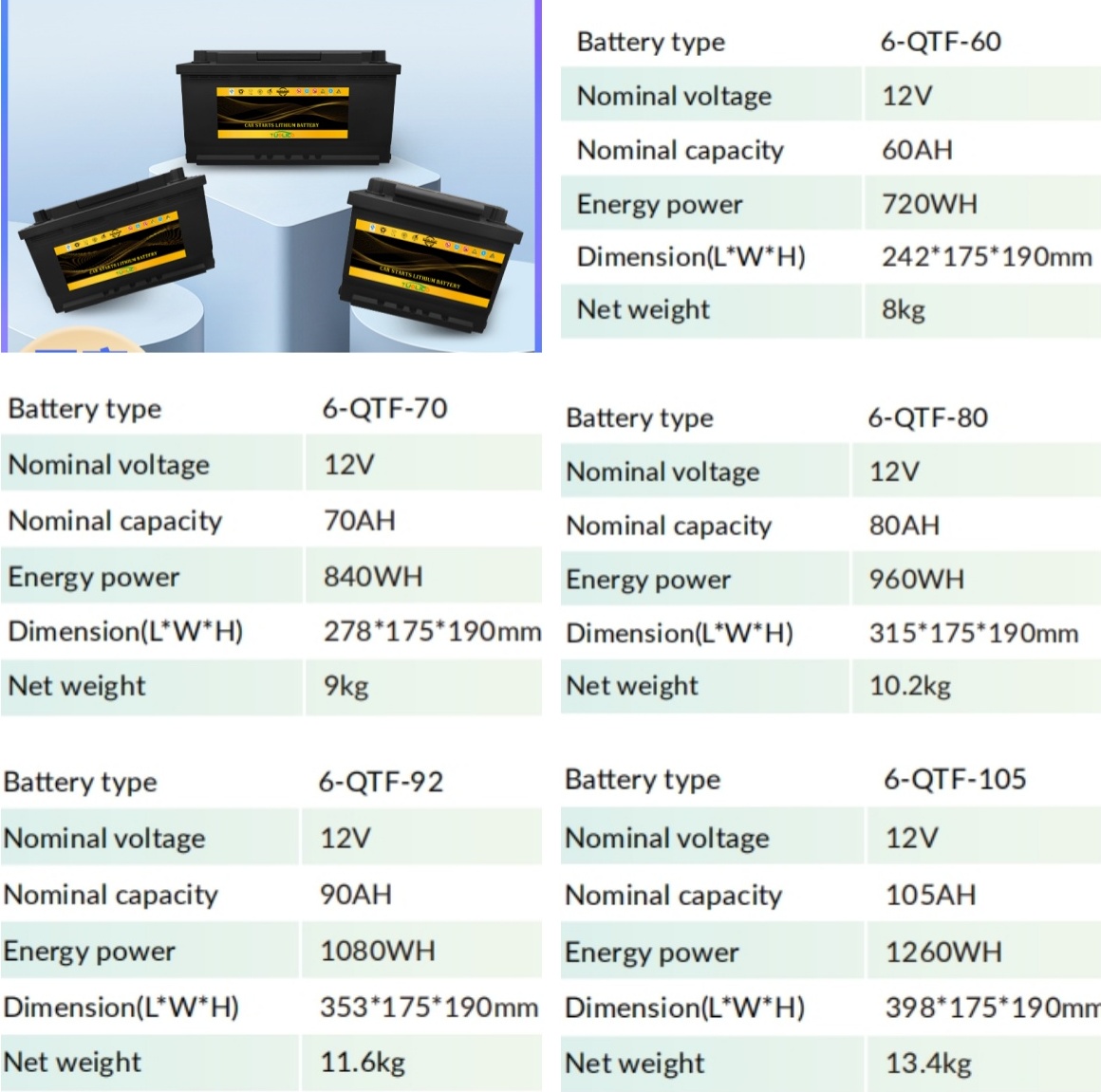 2、額定容量:60Ah 70AH 80AH 92AH 120AH
